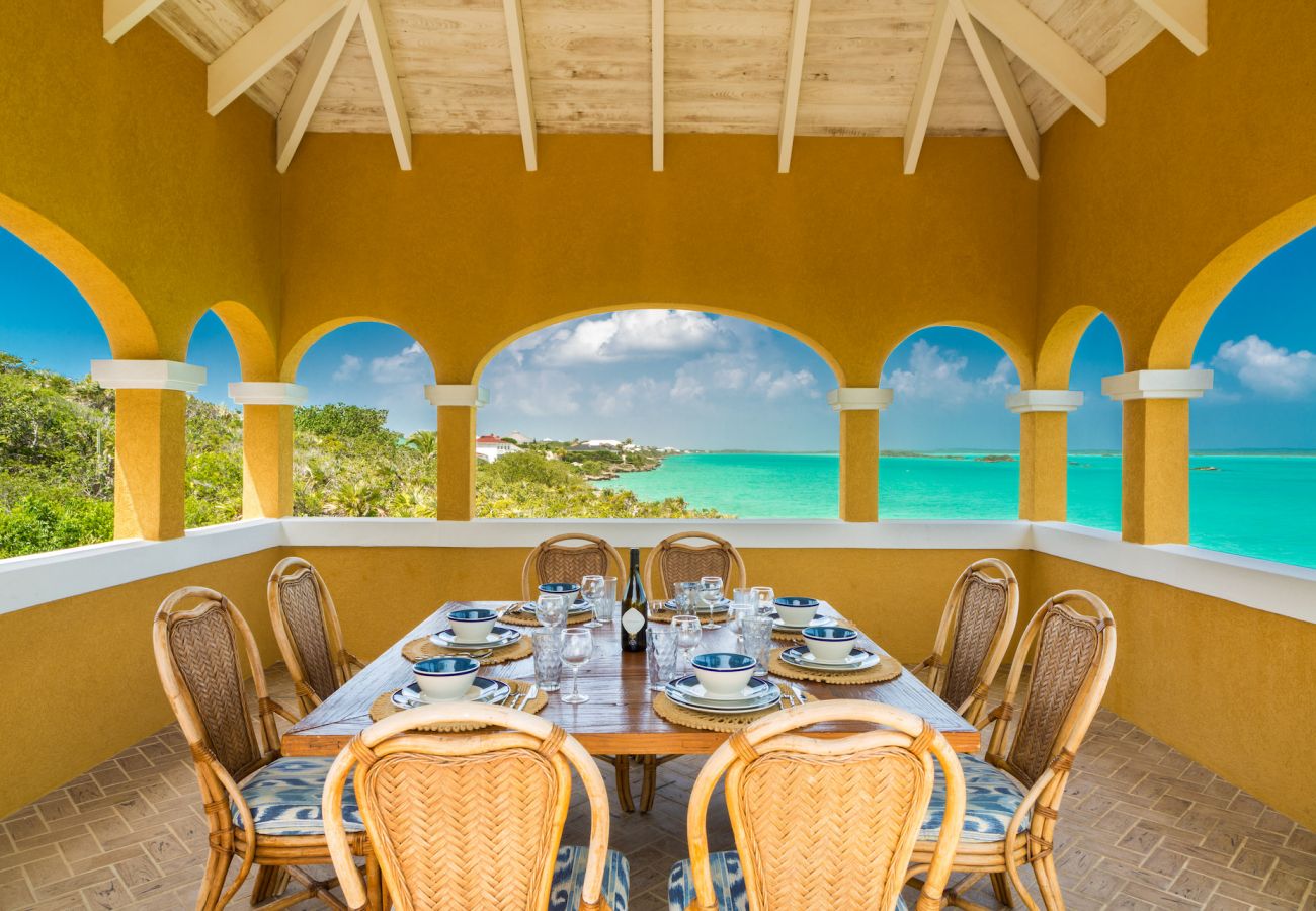 -the spacious covered pavilion overlooking the water and just steps away from the pool - we dare anyone to find a better view on Chalk Sound